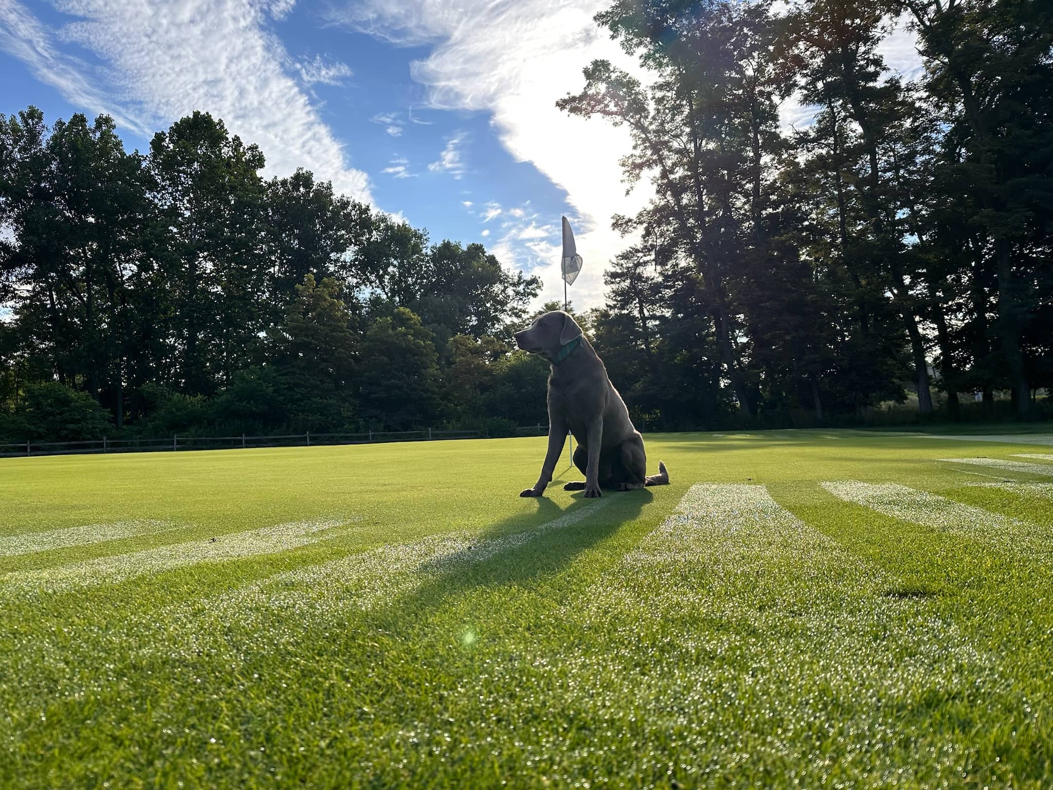 The drive on this dogleg left hole MUST stay to the right of white pole (this is to protect players on #4 green). Loss of distance is the only penalty. Stay to right approaching green.