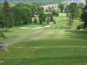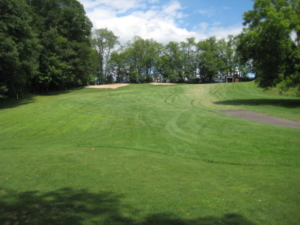 This dogleg left hole has a pond on the right and tight approach to a rolling green; the second shot will be off an uphill, sidehill slope testing your control off uneven lies. One of the harder holes on the course, par is a great score.